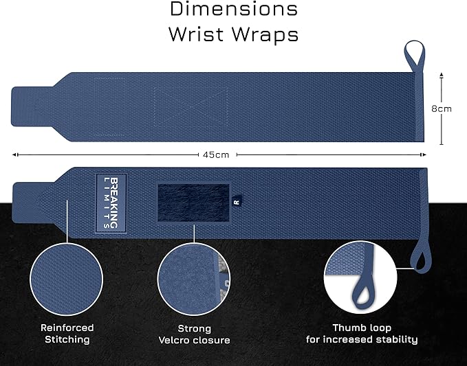• πŸ‘ PROTECTS THE WRISTS - Our wrist straps for weight lifting protect your wrists during heavy lifting. Wear these weight lifting wrist wraps with thumb loops while you do your bench press sets and reps.