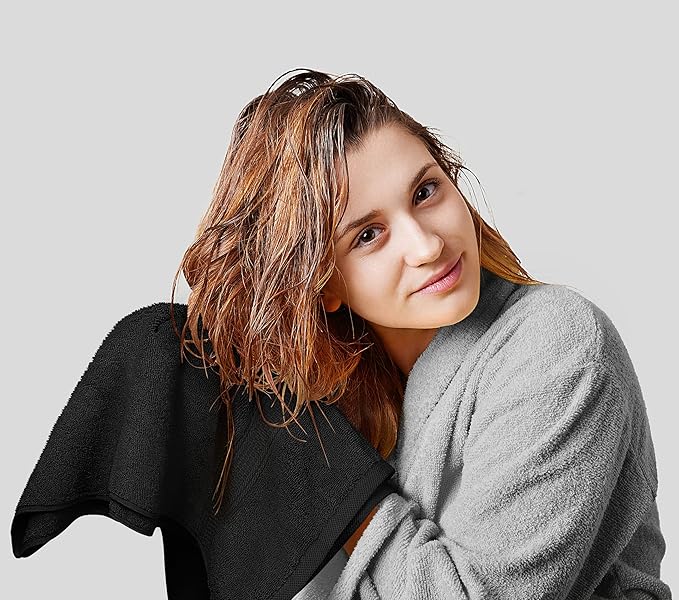 Utopia Towels 8 Piece Premium Towel Set, 2 Bath, 2 Hand, and 4 Wash Cloths, 600 GSM 100% Ring Spun Cotton, Highly Absorbent Towels for Bathroom, Gym, Hotel, and Spa, Black