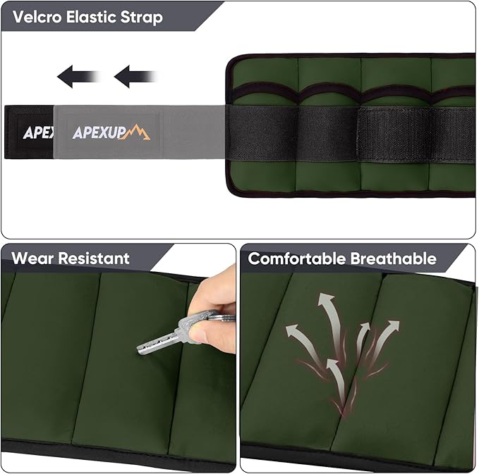 • [PREMIUM QUALITY] APEXUP adjustable ankle strength training weights are filled with iron sand to ensure a compact profile. The sleeve material of the ankle weights for men is soft and breathable, which will give you maximum comfort during workout.
