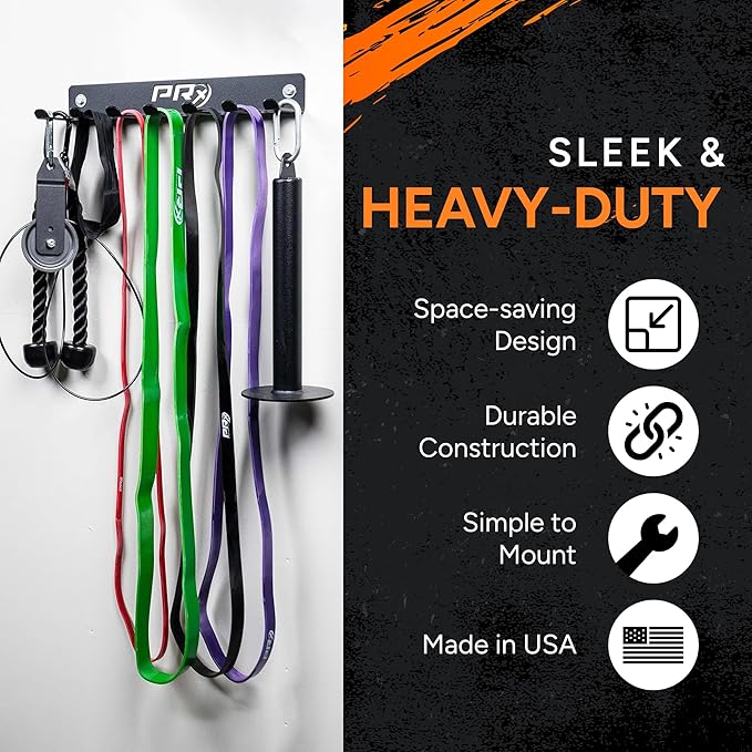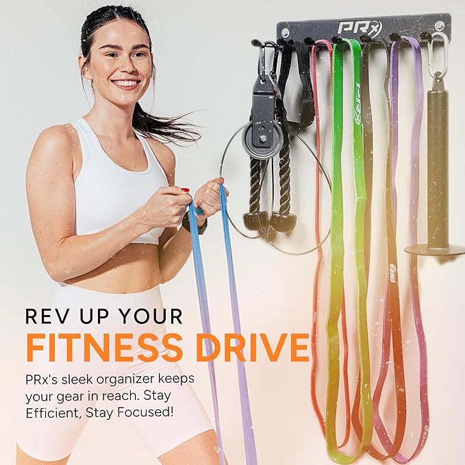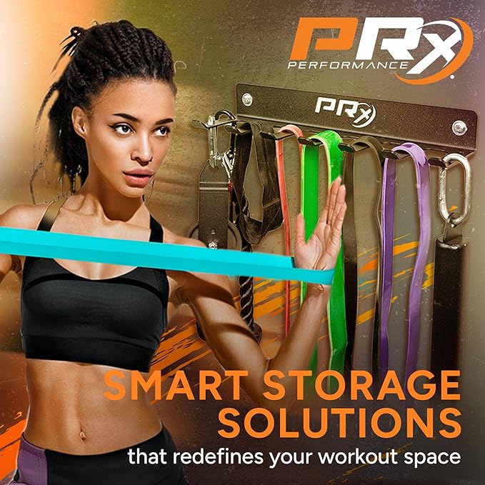 • EFFICIENT GEAR ORGANIZATION: Keep your workout zone clutter-free and ready for action! PRx Performance's rack, with its practical 18"x5"x2.5" size, neatly houses jump ropes, resistance bands, and more, ensuring your gear is always within reach for that high-energy session.