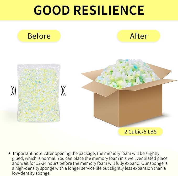 • WIDE APPLICATION & GOOD BOUNCE BACK. The memory foam refill can bounce back perfectly and provide comfortable and soft support. Family friendly, perfect for pillow filling stuffing, dog bed stiffing, cushion, Couch, Bed, Plush toys, beanbag chair etc.