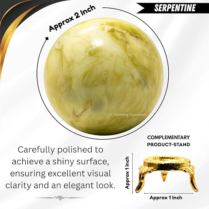 Amazing Gemstone Serpentine Crystal Ball with Stand - 2 Inches Crystal Sphere Meditation Balls for Witchcraft and Decorative Balls