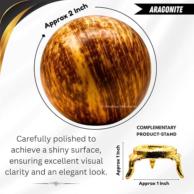 Amazing Gemstone Aragonite Crystal Ball with Stand - 2" Inches Crystal Sphere Meditation Balls for Witchcraft and Decorative Balls