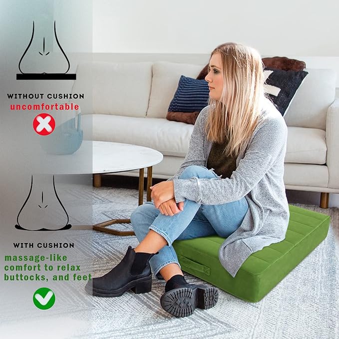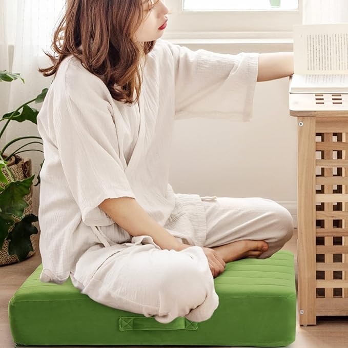 MeMoreCool Square Floor Pillow Seating for Adults Kids, Large Meditation Cushion Floor Pillow with Thick Foam & Soft Tufted Cover, Washable Big Pillow Seat Floor Cushion for Sitting Yoga 22" Green