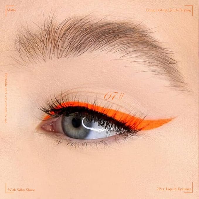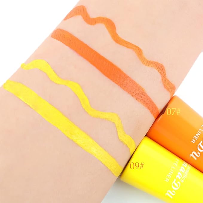evpct 2Pcs Orange Yellow Liquid Eyeliner Set Waterproof Neon Orange Yellow Eye Liners Liquid for Women Stamps Shapes for Eyes delineadores de colores para ojos delineador de ojos contra el agua 07&09