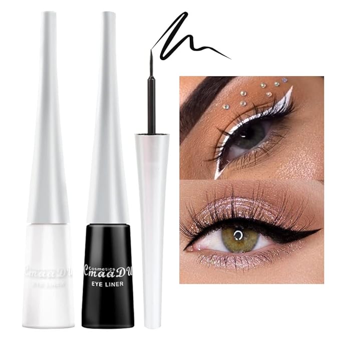 evpct 2Pcs White Black Liquid Eyeliner Set Waterproof White Eye Liners for Women Eyes Wing Eyeliner Stamps Shapes Colored Eyeliner delineador de ojos a prueba de agua contra el agua blanco para ojos
