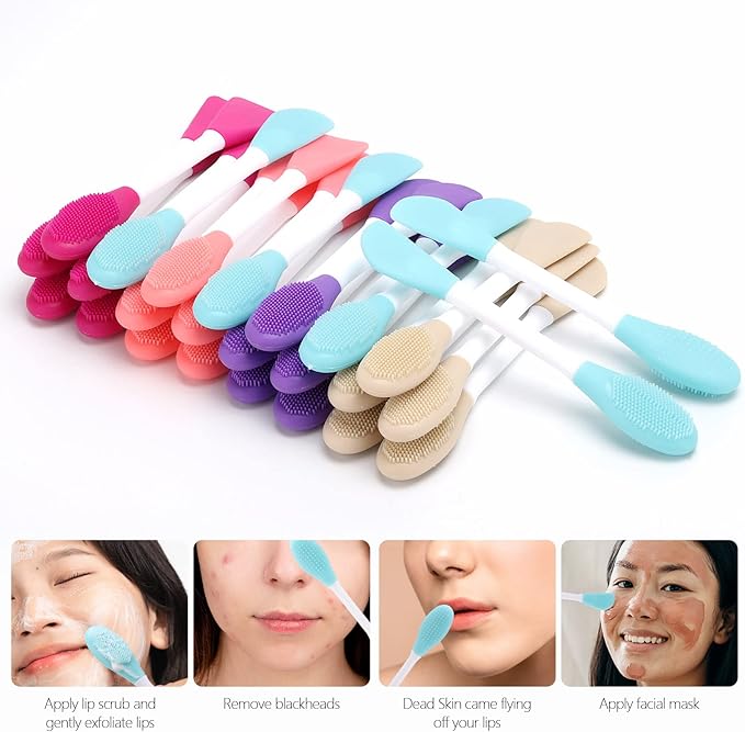 20 Pcs Silicone Face Mask Applicator, 2 in 1 Double-Sided Facial Scrubber Brush Tool, Double-Head Manual Cleansing Brush for Deep Gentle Exfoliating
