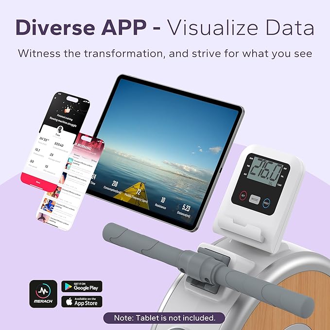 • MERACH APP: Our exclusive App offers various courses and programmed exercises for you. Also, compatible with KINOMAP APP, immerse yourself in splash, and feel nature even while rowing at home.