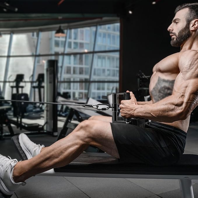 • 【Fits All Hand Grip】The pulley handles are made of steel with rubber handle. The size of plastic handle is 6 x 1.5 inch, conforms to the physiological structure of human hands, fits all hand sizes, comfortable. Even in the winter exercise, using the rubber grip will not feel very cold for a better workout experience
