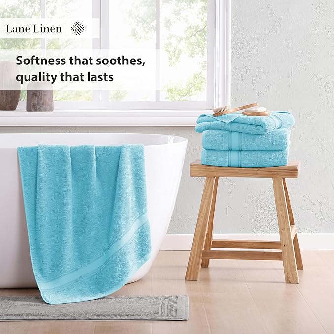 LANE LINEN Luxury Bath Towels Set - 12 Piece, 100% Cotton, Zero Twist, Super Soft & Absorbent, Includes 4 Bath Towels, 4 Hand Towels, 4 Washcloths - Blue