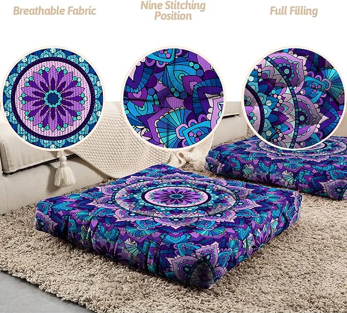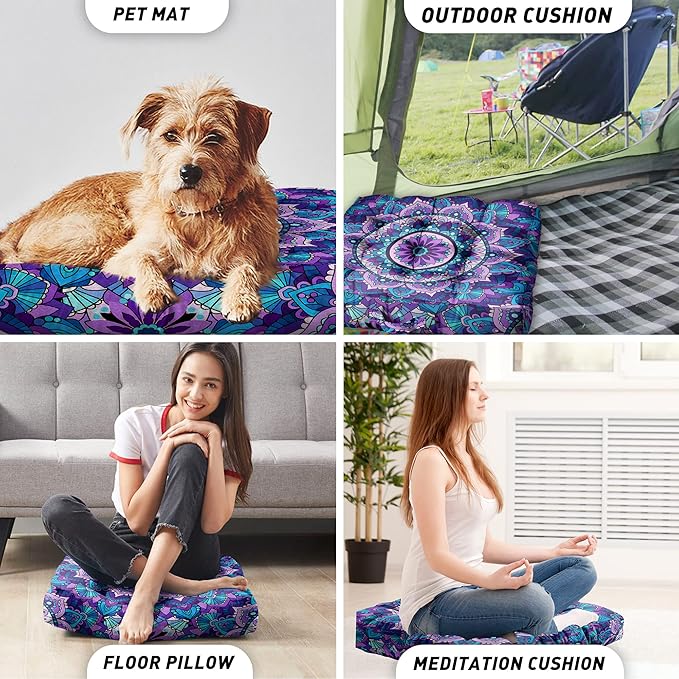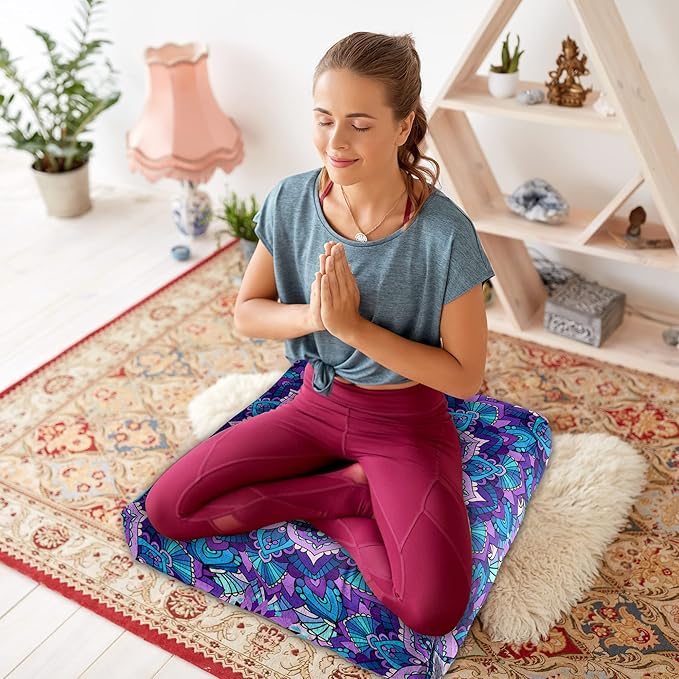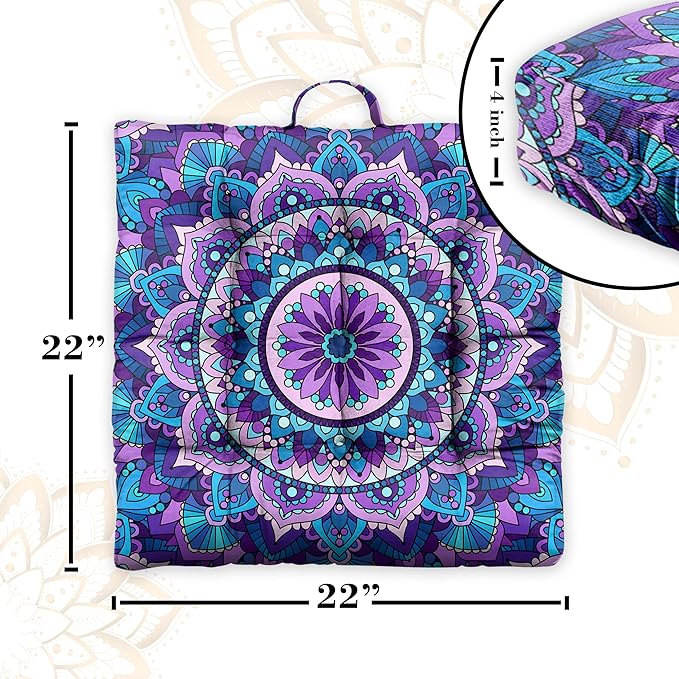 Mandala Meditation Cushion, Boho Meditation Mat, Meditation Pillows for Sitting on Floor, Cushions for Sitting in Home and Outdoor, Square Floor Pillows Cushion Seating for Yoga 22'' X 22''