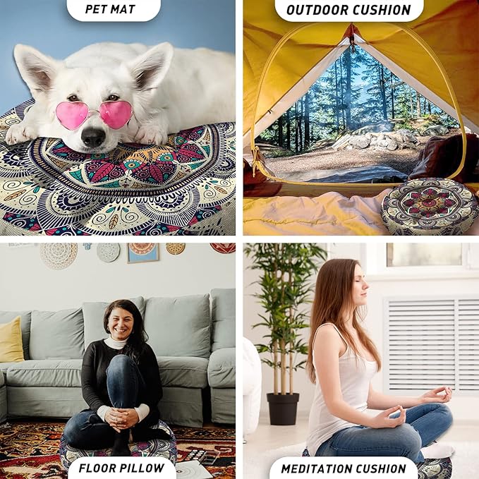 Mandala Meditation Cushion, Boho Meditation Mat, Meditation Pillows for Sitting on Floor, Cushions for Sitting in Home and Outdoor, Round Floor Pillows Cushion Seating for Yoga 22'' X 22''
