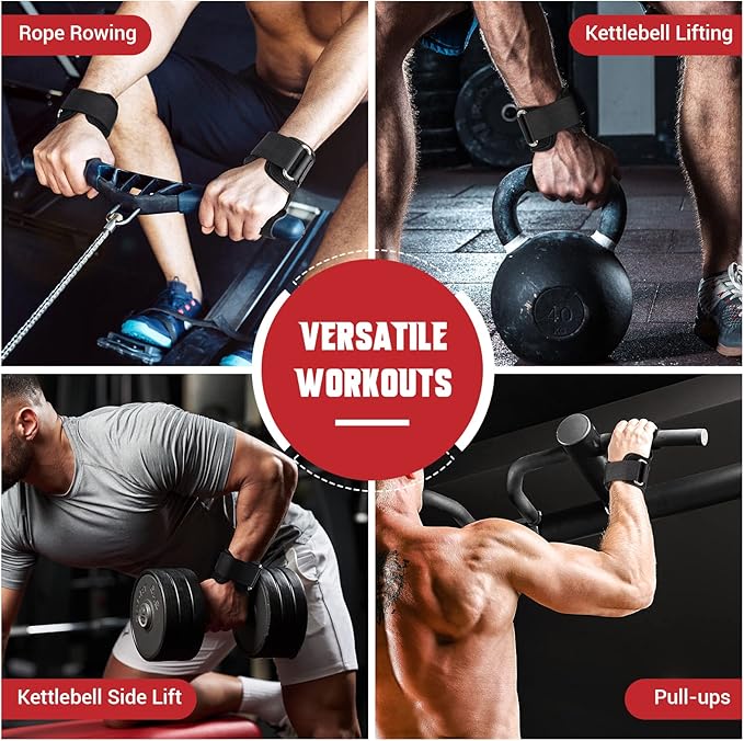 • Perfect fitness partner: Wrist workout straps are great for weightlifting, strength training, bodybuilding, pull-ups, hard pulls, shrugs, barbell rowing and upright rowing. Not only is the cow suede sweat-wicking and non-slip, but it is also constructed to last and resist up to 480 lbs without tearing. The wrist straps weighs only 0.5 pounds, so you can carry it with you, using it at home, in the gym or in the outdoors.