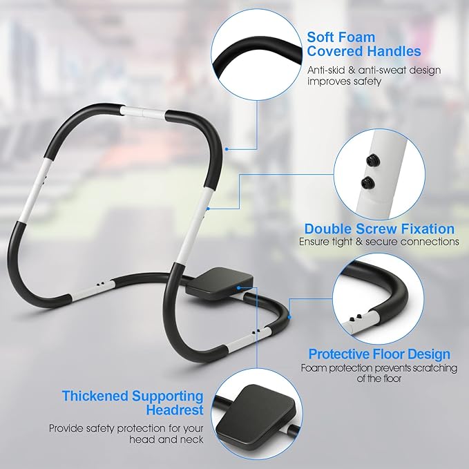 • 💪【Versatile Use for Body Strength】The Goplus AB trainer offers multiple training options for diverse muscle groups, such as leg raise, push-ups, crunches, stretches, allowing you to train your back, shoulders, arms, chest, and other parts of your body effectively. This AB frame is aimed to exercise your muscles in all directions.