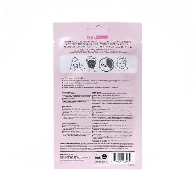 BioMiracle Revitalizing Collagen Face Mask, Infused with Rice Extract, Lemon and Turmeric, 10 Sheets (10 Pack)