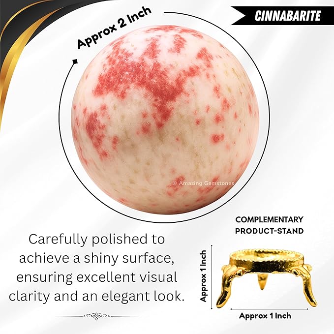 Amazing Gemstone Cinnabarite Crystal Ball with Stand - 2 Inches Crystal Sphere Meditation Balls for Witchcraft and Decorative Balls