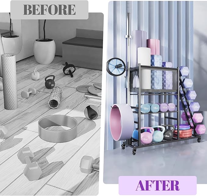 • 【Store It All – One Rack for All Gear】This all-in-one dumbbell rack stores your dumbbells, kettlebells, barbells, plates, yoga mats, resistance bands, balls, and more—creating a clutter-free fitness zone for the whole family. From strength training to flexibility work, everything you need is right where it should be.