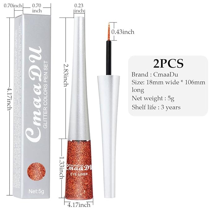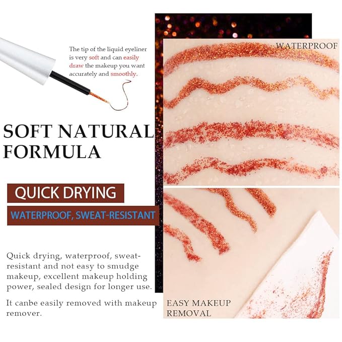 • ❤【Long-wearing and Waterproof】Brilliantly,glitter,sparkle long-wearing liquid eyeliner, highly pigmented, waterproof, strong adhesion. Long-wearing sparkle eyeliner lavishes eyes with incredible glitter and shimmer.