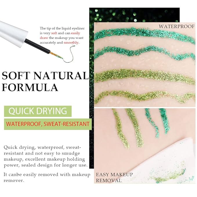 • ❤【Long-wearing and Waterproof】Brilliantly,glitter,sparkle long-wearing liquid eyeliner, highly pigmented, waterproof, strong adhesion. Long-wearing sparkle eyeliner lavishes eyes with incredible glitter and shimmer.