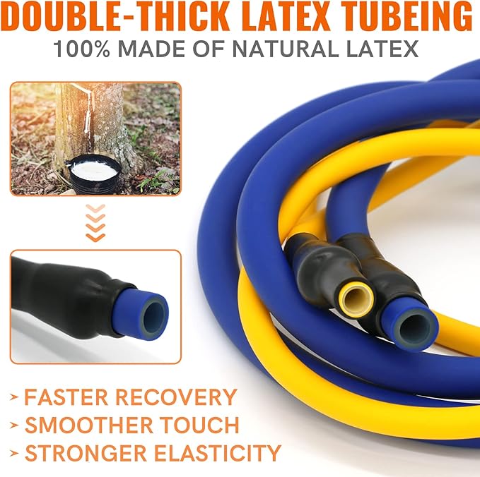• THE LATEST UPGRADED 105LBS RESISTANCE BANDS: Our resistance bands for working out are made of 100% healthy and environmentally friendly natural latex material, which have smoother touch, stronger resistance and better wear resistance! The exercise bands resistance have 5 different strength levels, corresponding to 5 different colors (yellow 5 lbs, green 15 lbs, red 20 lbs, blue 30 lbs, black 35 lbs), which can be used alone or stacked in any combination to a maximum equivalent of 150 lbs