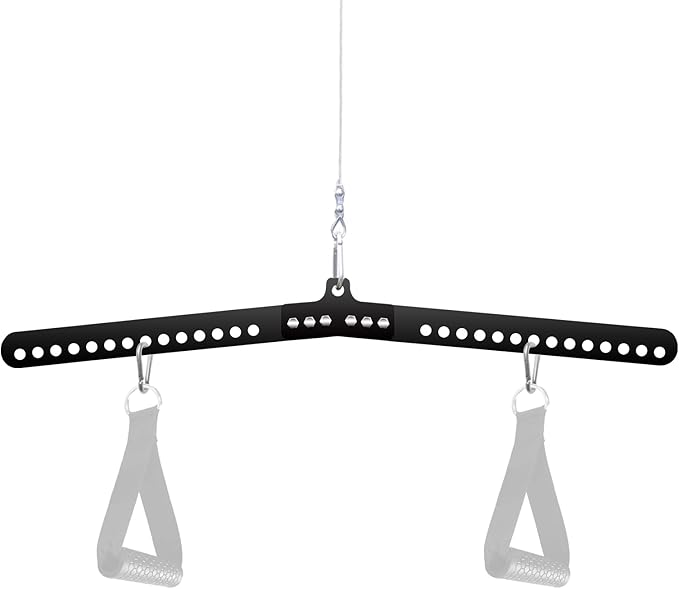 32" D Handle Cable Crossover Double Pulley System Workout Rope Exercise Machine Accessories Spreader LAT Pull Down Bar Attachment Double Hook Parts for Squat Rack Home Gym(8mm)