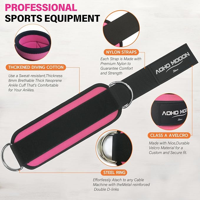 • Easy to Lift the Buttocks and Legs - AOHO MOOON cable kickback ankle strap tone and tighten your Lower Body Muscles, Improve your leg workouts, and Essential gym accessories for cable pulley kickbacks, hip swings, side leg lifts, donkey kicks, fire-hydrants, leg curls, hip thrust.