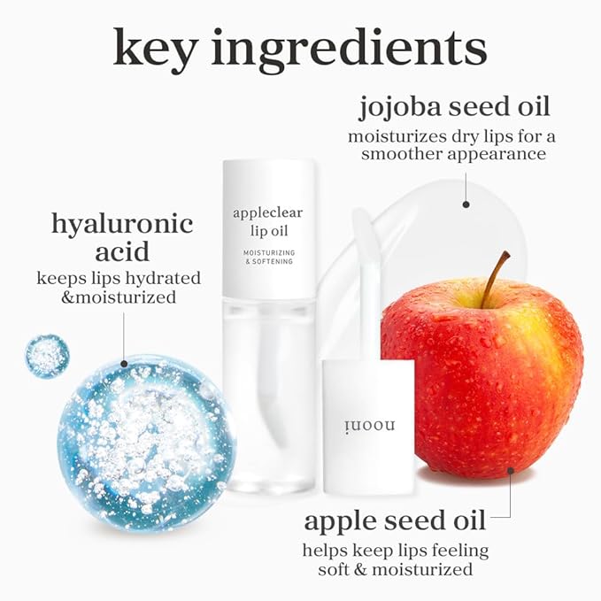 NOONI Korean Lip Oil - Appleclear | Long-Lasting, Moisturizing, Plumping, Revitalizing for Dry Lips, Waterproof, No Peel Off, Hydrating, Nourishing Crystal Clear, 0.12 FL Oz