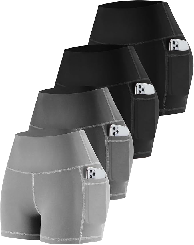 CHRLEISURE Womens Biker Yoga Shorts with Pockets: High Waisted Tummy Control Spandex Workout Athletic Gym Shorts 4 Packs