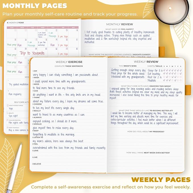 • BUILD A HAPPIER & HEALTHIER MINDSET FOR YEARS TO COME: This self care notebook is filled with prompts, open-ended questions, wellness trackers, and many other tools to help you pinpoint the changes you can make to improve your well-being.