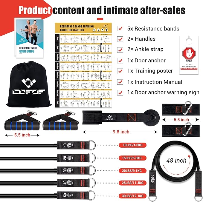• 💞Upgraded Resistance Bands & After-sales Service: You will get resistance band*5, 2 handle, 2 ankle strap, 1 door anchor, 1 training poster, 1 instruction manual. To increase your workout intensity level, simply combine resistance bands with training posters to suit your workout needs. With resistance band exercises, you can get the perfect shape. If you encounter any problem while using the product, please contact us and we will help you to solve it within 12 hours.