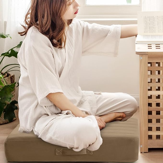 • [Convenient Handle] Handy handles are convenient to carry and move, so you can take the giant floor pillow easily. Square 24x24 inches, designed with solid khaki color, this floor seat cushion can be used as a decorative baby pouf pillow, kids floor pillow cushion, adults meditation pillow, floor tatami cushion, or even pet dog bed, more comfortable and softer than sitting on the hard floor