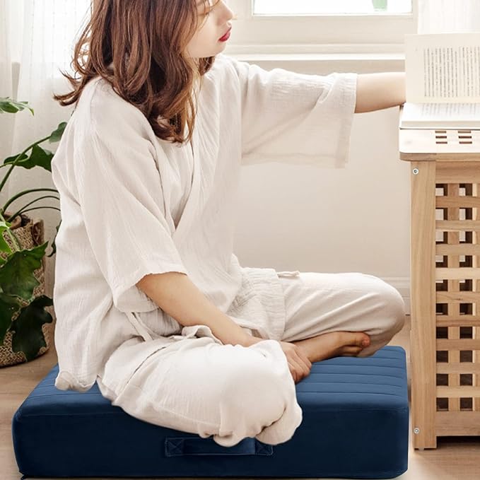 MeMoreCool Square Floor Pillow Seating for Adults Kids, Large Meditation Cushion Floor Pillow with Thick Foam & Soft Tufted Cover, Washable Big Pillow Seat Floor Cushion for Sitting Yoga 22" Navy
