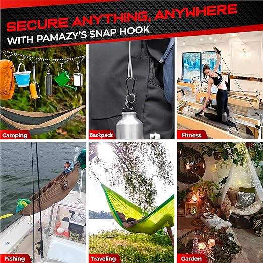 • MULTIPURPOSE SNAP HOOK: Our heavy duty carabiners is perfect for a variety of indoor and outdoor activities, such as camping, hiking, backpacking, trekking, cycling, fishing, hunting, travel, and even organizing your keys, bags, or other items at home or in the office. You can also use it as a carabiner key ring or as a leash for your pets.