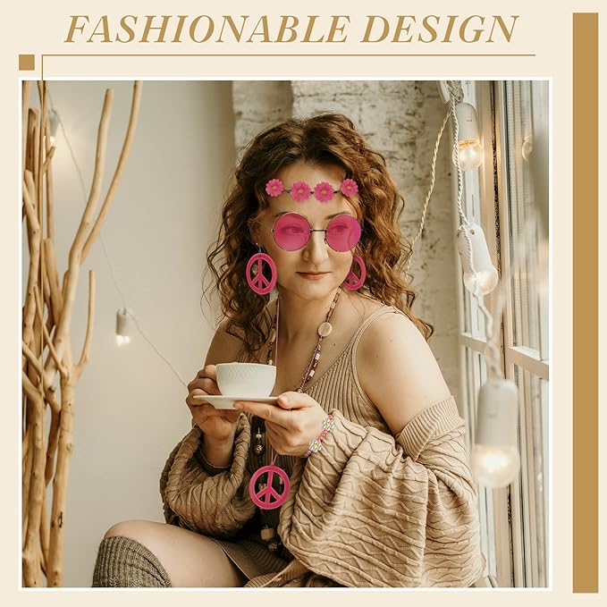 • Cool and Hip: these hippie clothes accessories are retro and trendy, boho floral hair wreath makes you look nice and charming, retro hippie glasses make you look more eye catching, peace sign necklace and earring make your charming. As this is a fashion accessory, it is recommended that you do not wear it continuously for extended periods of time. This will significantly improve comfort and avoid discomfort