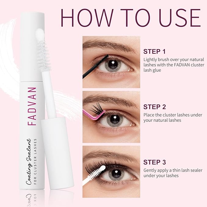 • Easy To Use: This cluster lash sealant is a must-have product for DIY eyelash extensions, and it's a perfect partner with FADVAN cluster lash glue. First, lightly brush over your natural lashes with the cluster lash glue, place the cluster lashes under your natural lashes, and finally, gently apply a thin lash sealer under your lashes.