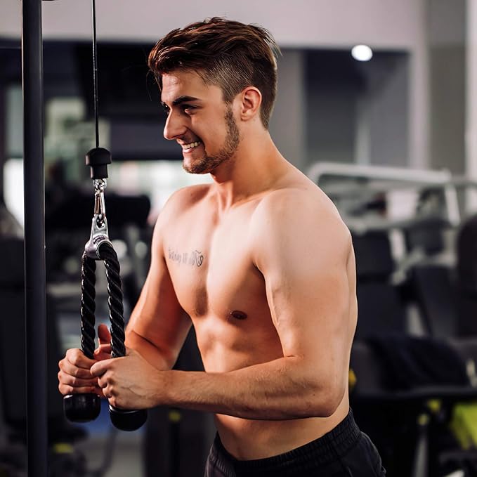 • ✅Nylon Braided Tricep Rope - made of heavy-duty black nylon braided rope with solid rubber ends and chrome plated swivel attachment provides fluently rotating movement. Weight Capacity: Up to 600 lbs.