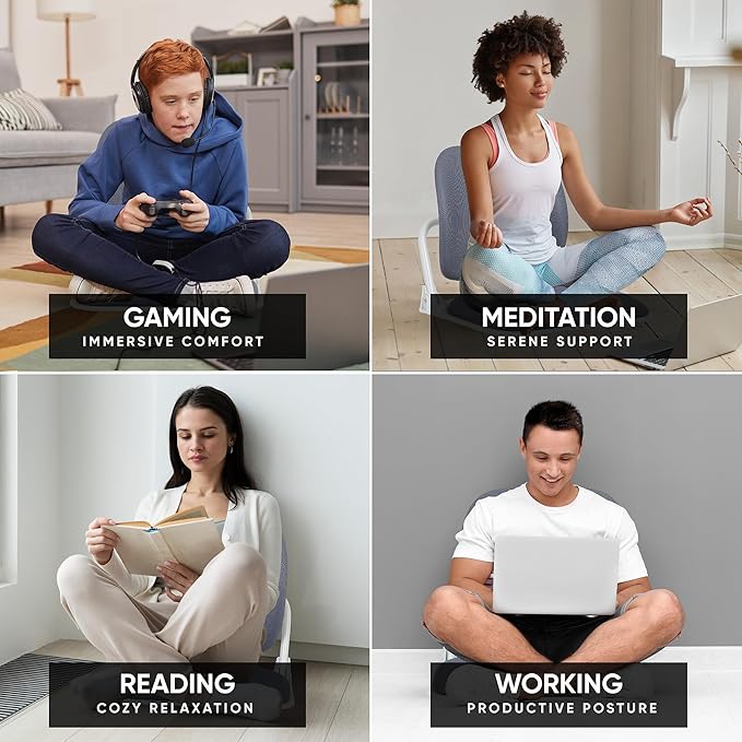 • 【Experience Unmatched Comfort with Dual-Backrest Design】: Embrace the perfect seating solution designed specifically for floor-sitting lovers. . The two backrests move independently to hug your back’s unique shape and reduce pressure on your lower back.
