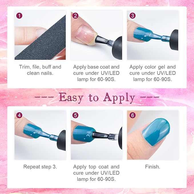 • Tip: This product needs to be maintained with a nail lamp when using. Nail lamps are not included in this product, please buy extra. For detailed instructions on how to use the product, the packaging contains the user manual, which you can read carefully. If you have any other questions, please consult.