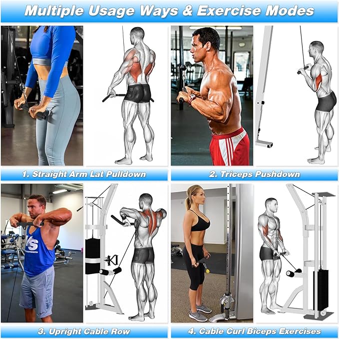 • 💪【Multiple Application】 Attached to cable pulley system, lat pull down machine, gym machine, weight machine, power rack and squat rack. You can exercise on your biceps, triceps, back, shoulders, lats and abs.