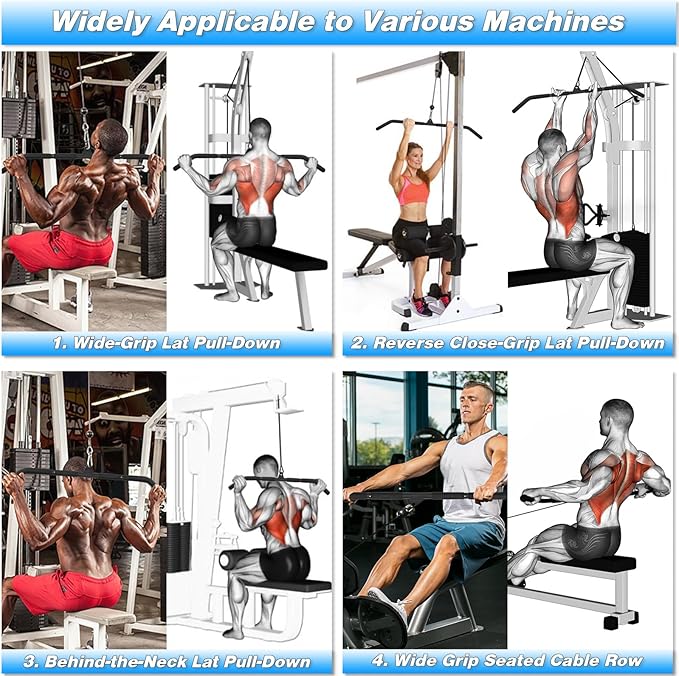 • 💪【Ideal Home Gym Attachment】 The cable machine attachment in the gym aim to strengthen the strength and muscles of the upper body by focusing on the shoulder, back, Latissimus dorsi muscle, Biceps, Triceps and abdominal muscles. Integrate this bar into your home gym and embark on your health journey!