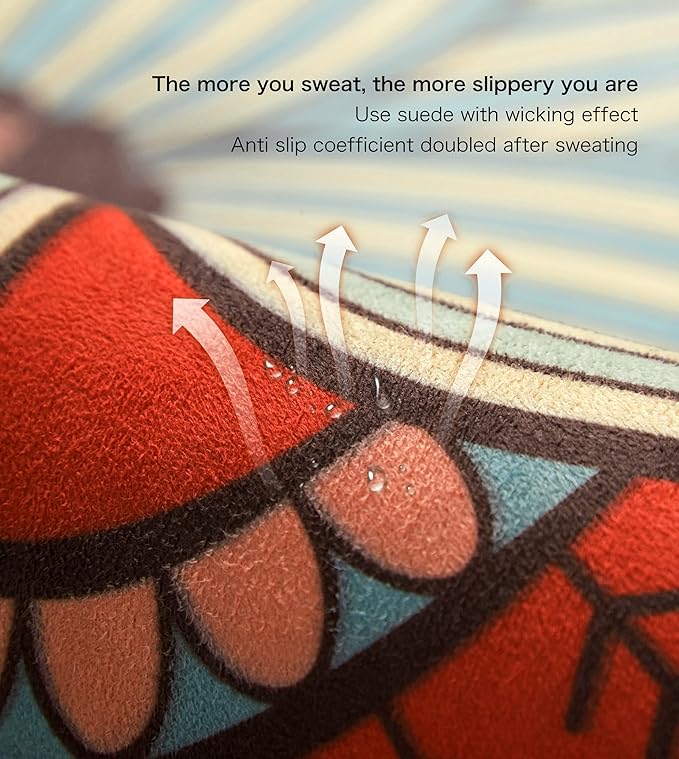 • Excellent Cushioning: With 3.5mm thickness and faux suede material, protecting the safety of all levels of yoga enthusiasts. Allow you to keep your balance during any exercise style. Moisture resistant makes the mat to be easily washed with soap and water. Clean spot with damp cloth, cold water and mild detergent, and then dry flat. Please don't expose directly to the sun.