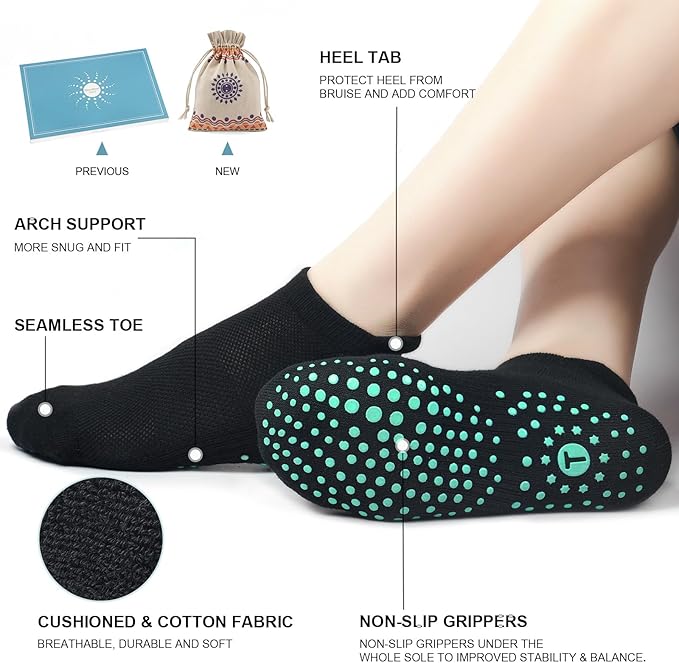 • Cushioned Sole and Heel Tab: These grippy socks woman features a thick, soft cushion that cover full sole for enhance comfort during exercise. Arch support and Y-heel design for snug fitting. Heel tab protect your achilles heel and prevent from slippering