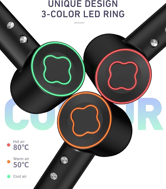 • Intelligent Temperature Control: Cosy Companions professional hairdryer measures the air temperature over 100 times per second and regulates the heat through a high performance chip control system. Avoid overheating damage to your hair and protect your hair. Our hair dryer has 3 different LED lights built in, and you can turn the LEDs into different colors by switching the heat button. Red means hot air, orange is warm air and green is cool air. Enjoy blow-drying your hair in comfort
