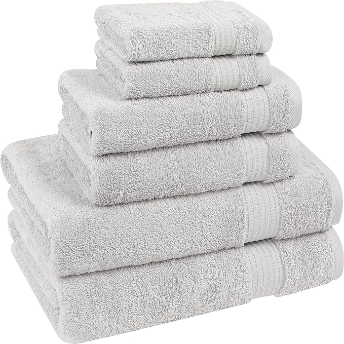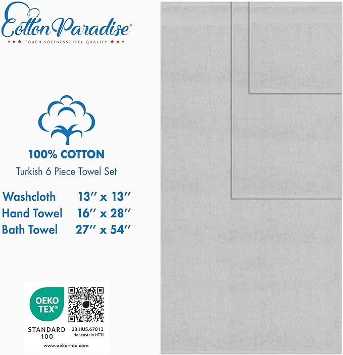 Cotton Paradise 6 Piece Towel Set 100% Cotton Soft Absorbent Turkish Towels for Bathroom 2 Bath Towels 2 Hand Towels 2 Washcloth Silver Gray Towel Set