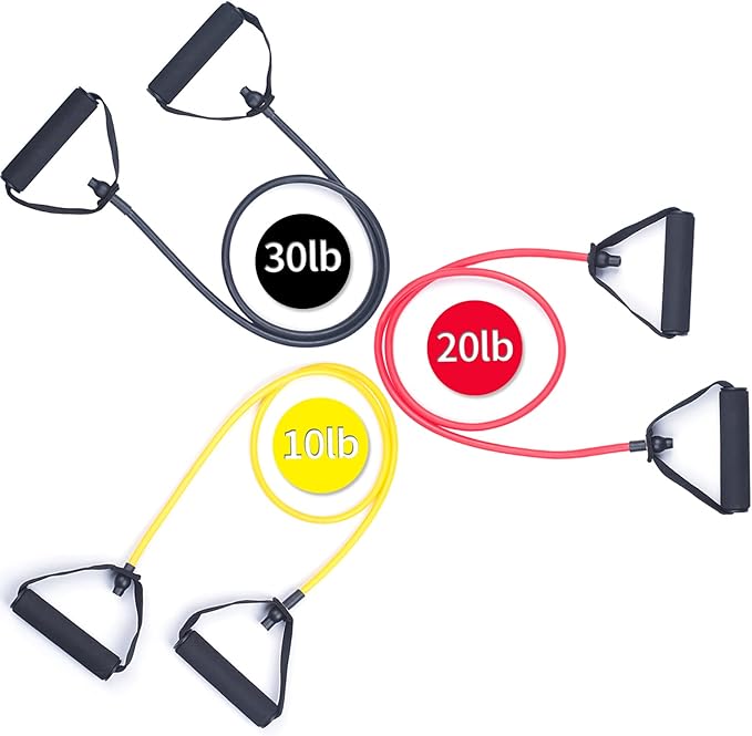 • [[MULTIPLE CHOICES] This set includes Black(30 LB), Red(20 LB), Yellow(10 LB) 3 resistance bands tube with handles, a foam band Perfect for all fitness levels beginner intermediate or workout pros. Rope Length: 4ft.