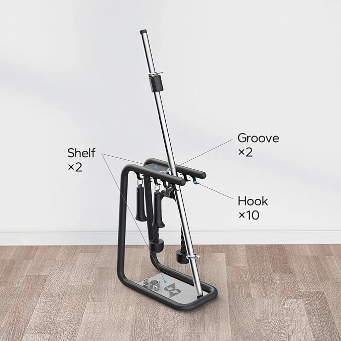 • Store Your Speediance Gear in Style: Tool-free assembly, Two rows of hooks to store more gear groove design to hold accessories in place.