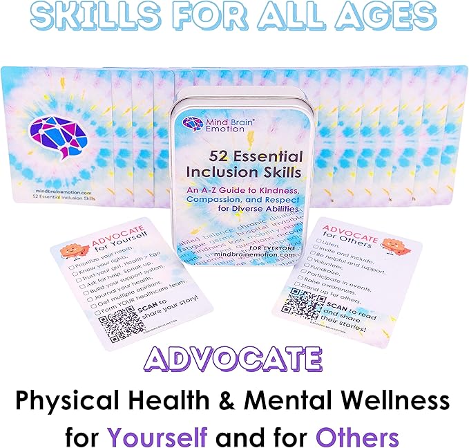 Mind Brain Emotion 52 Essential Inclusion Skills - A to Z Guide to Kindness, Compassion, Respect for Diversity and Disabilities - Educational Cards and Health Advocate to Teach Kids Empathy