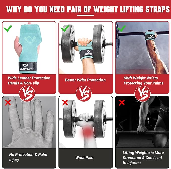 • Enhanced Grip: Professional leather deadlift straps can protect your hands from not only preventing calluses, but also peeling off existing calluses on your hands. Lifting straps take the pressure off your wrists and hands and help you lift heavier weights. More importantly, it improves your ability to exercise larger muscle groups.