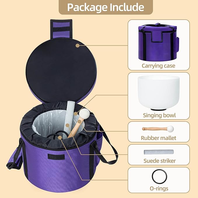 • Complete Meditation Kit: Our crystal singing bowl set, which includes 1 bowls tuned to the 432hz(A4) , comes with 1 carrying cases, 1 suede strikers, 1 rubber mallets, and 1 O-rings, offers a harmonious sound experience for deep relaxation and spiritual connection during meditation.