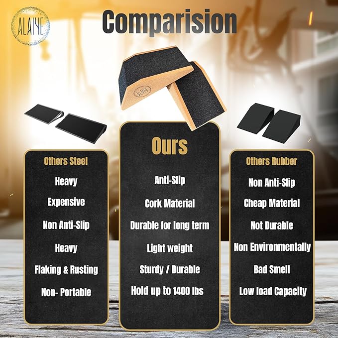 • 🏋🏽‍♀️ Perfect for Strength Training: ALAIYE Squat Wedge Blocks are designed to improve leg strength and hip flexibility during squats. Our squat stands pair perfectly with your strength training routine. Whether you're a beginner or an experienced athlete, these wedge blocks are essential for building muscle and increasing overall strength.